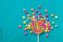 Sweet lollipop and colorful chocolate candy pills. #265689161