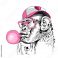Obraz Małpy - Portret wesołej małpy w czapce, okularach i z różową gumą do żucia. Śmieszne obrazy zwierząt - ilustracje w zabawnym wydaniu humorystycznym. Śmieszne obrazy zachwycają nie tylko dzieci i nastolatków a także dorosłych, zabawne obrazy w sypialniach nastolatków to sposób na przyjazną atmosferę uśmiech i relaks. Odkryj najpiękniejsze i najbardziej inspirujące ilustracje zwierząt, które można kupić online w formie obrazu na płótnie lub plakatu.