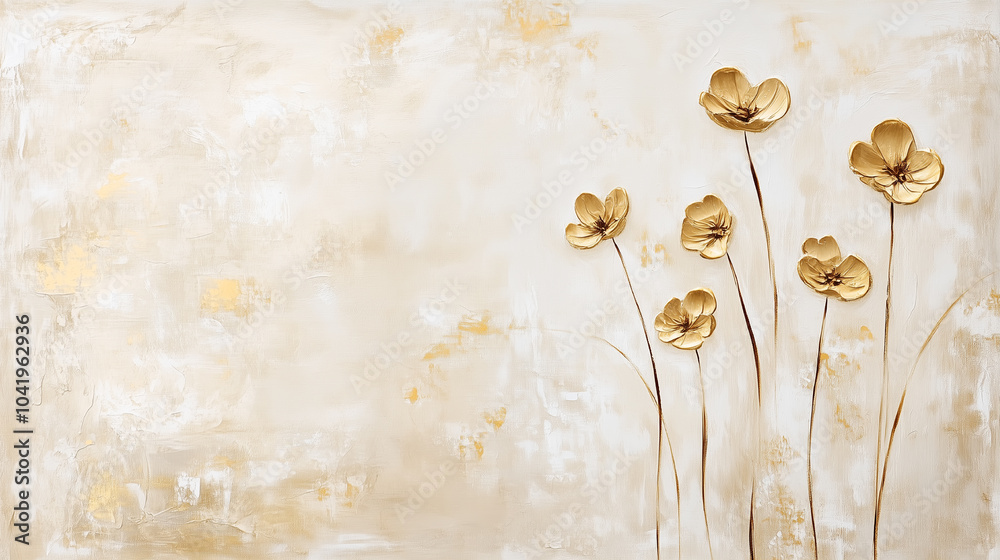 Hand Painted 3D Gold Oil Flowers. Health Psychology Yoga Meditation Rich VIP Pattern. Modern... #1041962936