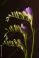 Modny niezwykle piękny motyw kwiatowy. Obraz oraz plakat z kwiatem frezji w odcieniach purpury na czarnym tle. Delikatne zielone pąki kwiatu frezji. Ozdoba na ścianę do modnego wnętrza w stylu skandynawskim z dodatkami purpury oraz fioletu.