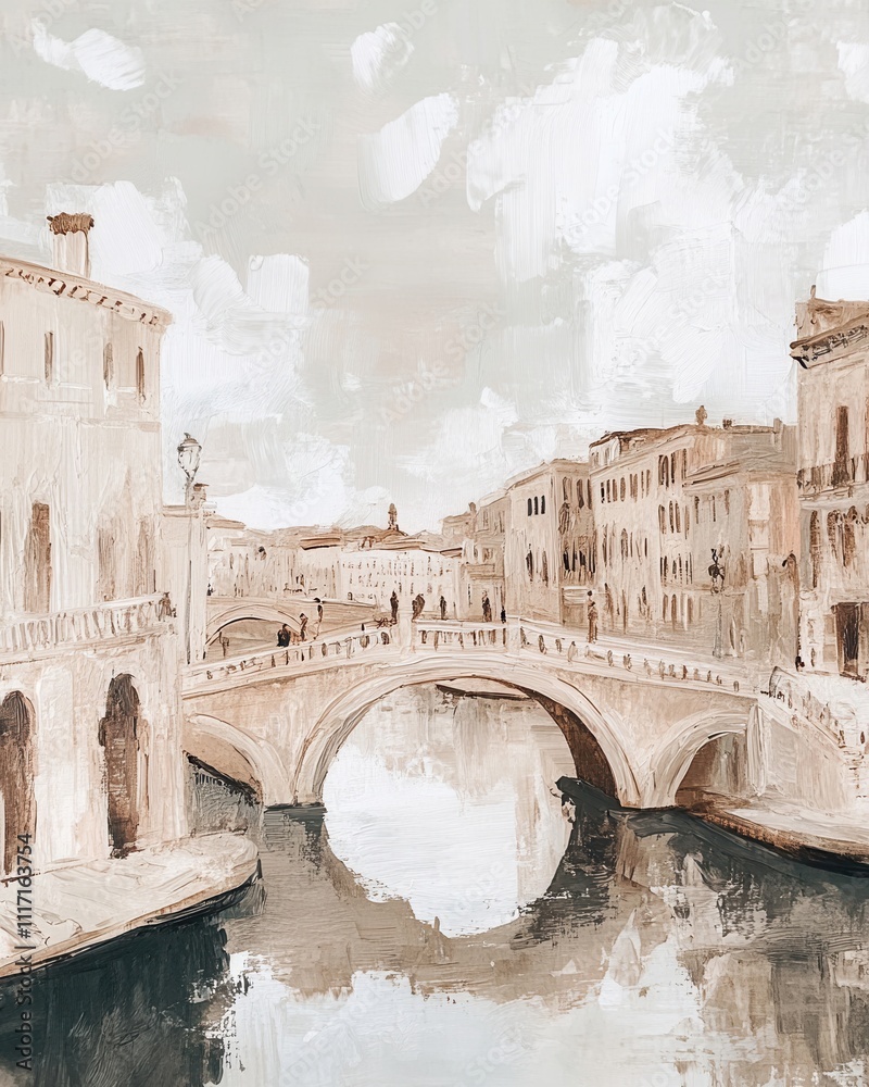 Vintage city or town landscape art painting, wall art, design, realistic, textured painting #1117163754