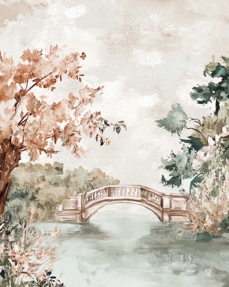 Vintage landscape art painting, wall art, design, realistic, textured painting #1120582179