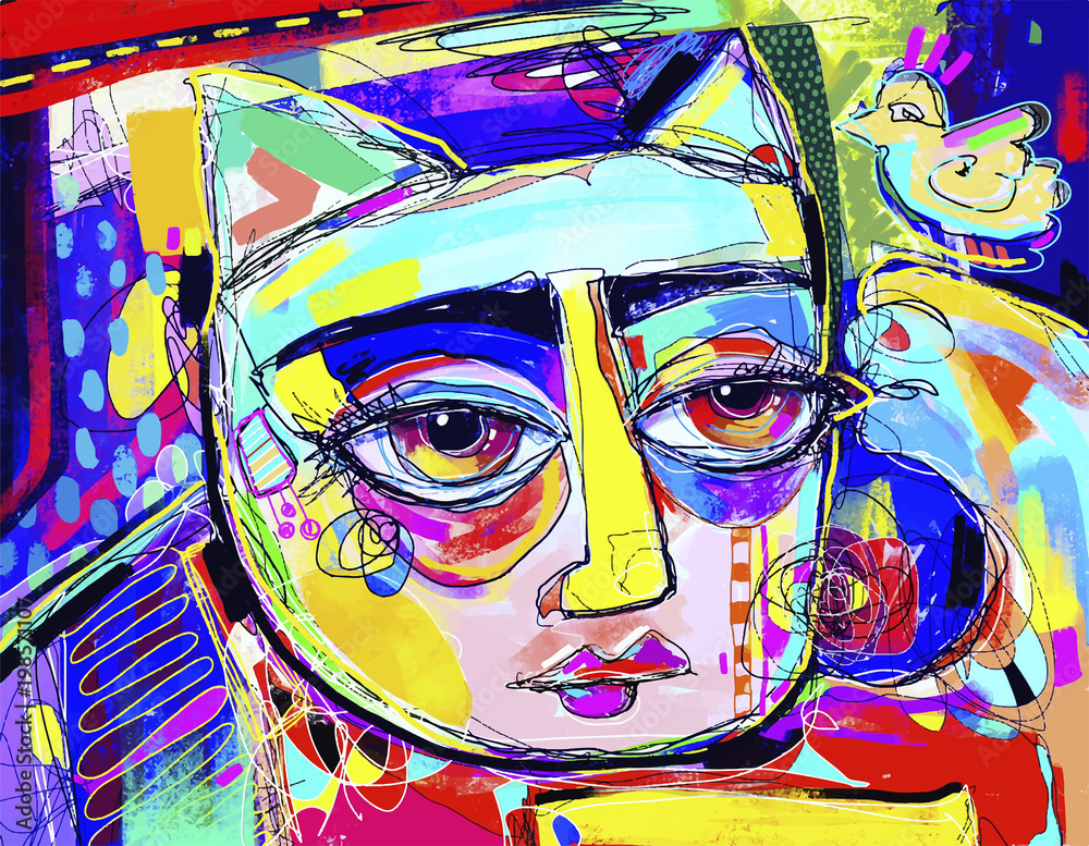 original digital artwork of cat portrait, contemporary art pictu #198571107