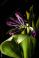 Fioletowy kwiat frezji na czarnym tle. Fotografia makro nie zwykle precyzyjna. Piękny dodatek w formie obrazu lub plakatu. Plakat na satynowym papierze w wyjątkowy sposób ozdobi ściany wnętrza z fiotetowymi bądź fuksiowymi dodatkami.