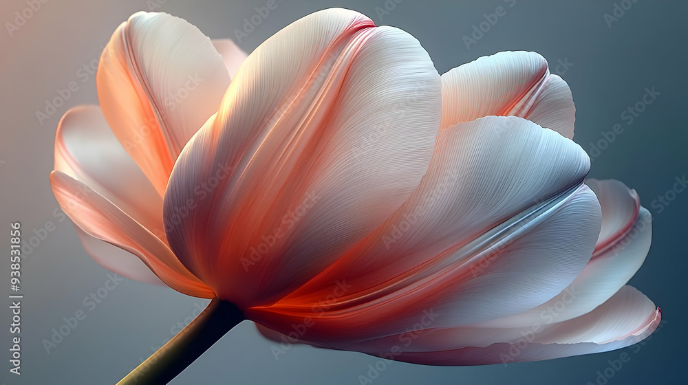 Close-up of a delicate pink tulip with soft, glowing petals. #938531856