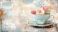 Vintage cup of coffee with roses on grunge textured background #1265081257
