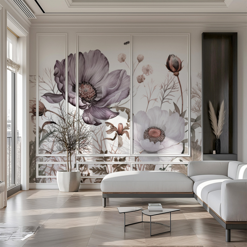Tapeta "Polne Kwiaty" doskonale wpisuje się w różne trendy wnętrzarskie. W stylu BOHO łączy naturalność z artystycznym wyrazem, doskonale komponując się z drewnianymi meblami, rattanowymi dodatkami i lnianymi tekstyliami. W stylu JAPANDI jest minimalistyczna, ale ciepła, świetnie współgra z jasnymi, skandynawskimi wnętrzami. W stylu VINTAGE, w duecie z antycznymi meblami i delikatnymi, koronkowymi tkaninami, stworzy romantyczną atmosferę. Natomiast w stylu MINIMALISTYCZNYM, stonowana, ale pełna detali, dodaje wnętrzu wyrafinowanej głębi bez zbędnego przepychu.