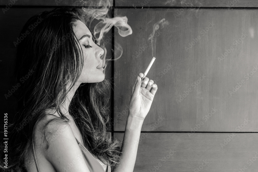 Fashion portrait of beautiful woman sexy slim body smoking cigarette #191716336
