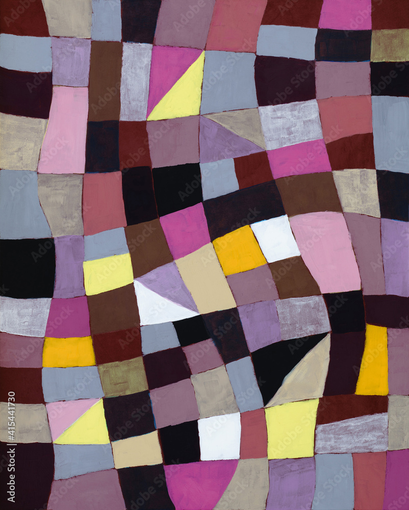 An irregular grid painting, with violets and yellows predominant. #415441730