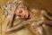 young beautiful blonde woman lying on gold glitter background #182820238