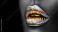 Golden lipstick closeup. Silver with Gold metal lips. Beautiful makeup. Sexy lips #397618353