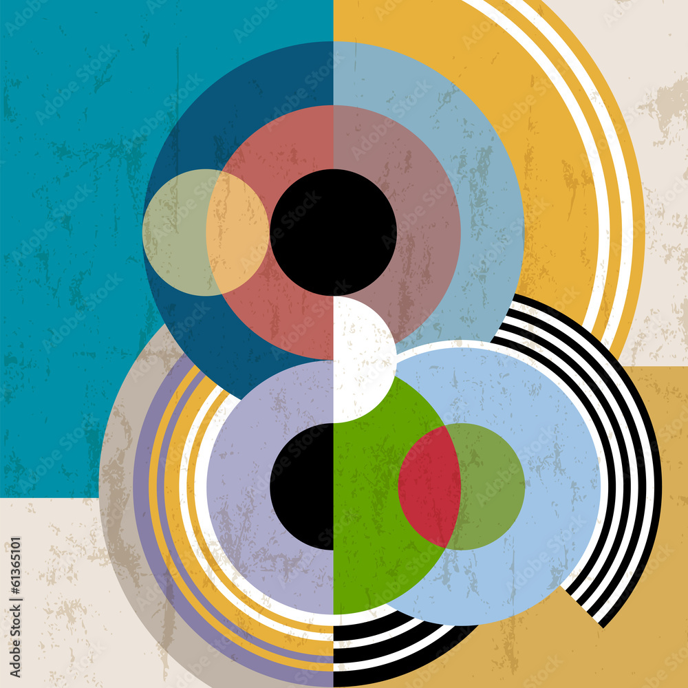 Obraz Abstrakcja Kolorowe Koła, streszczenie tła, koła, styl retro / vintage z pociągnięciem farby, styl vintage inspirowany sztuką. Obraz Trójkąty dedykujemy dla miłośników nowoczesnych wnętrz. Obraz można powiesić na ścianie lub postawić na komodzie, każde wnętrze zyska niecodziennego szyku i artystycznego charakteru. Przy dekorowaniu swojego wnętrza nie zapomnij o dodatkach, Obrazach lub Plakatach w wysokiej jakości, to one tworzą wysublimowany klimat piękna.