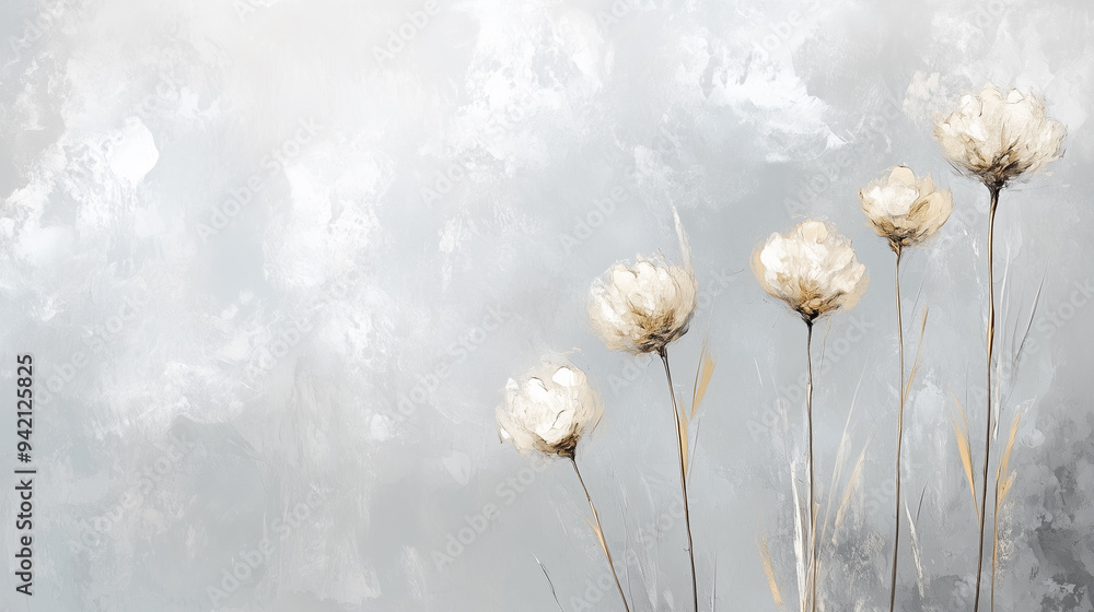 Hand Painted Oil Flower Canvas. Serene Female Cosmetic Illustration. Psychology, Meditation,... #942125825