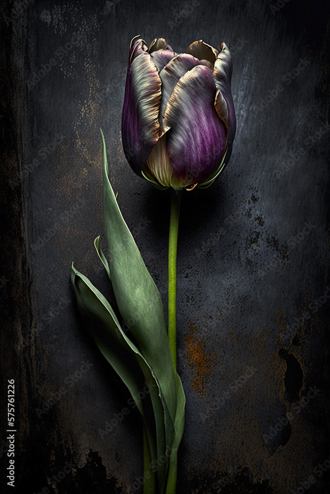 Dramatic Purple Tulip on dark background | Generative AI #575761226