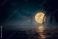 Beautiful fantasy tropical beach with star and full moon in night skies - Retro style artwork... #144574688