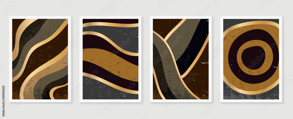 Złote Plakaty, geometryczny złoty wzór. Plakat na ścianę- sztuka z abstrakcyjnym kształtem i złotym wzorem. Zestaw plakatów nowoczesnych - sztuka współczesna. Abstrakcyjna sztuka ścienna. Obraz na płótnie lub plakat w formie Tryptyku w rozmiarze 50/70 cm to nowoczesny zestaw dekoracyjny na ścianę.