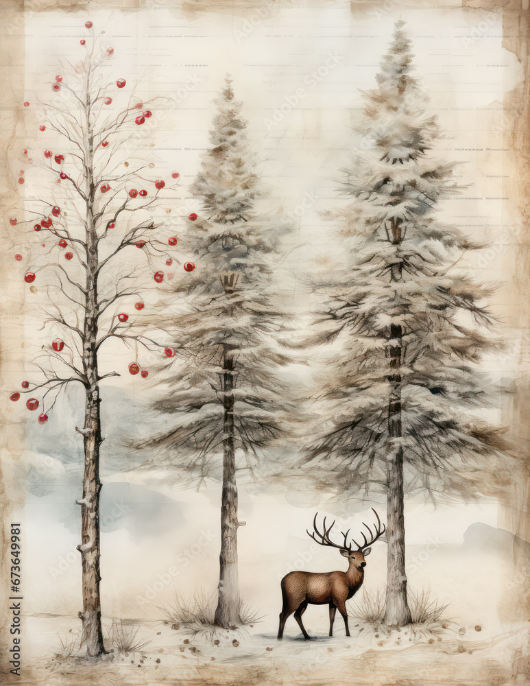 Vintage winter trees background - decorative seasonal card #673649981