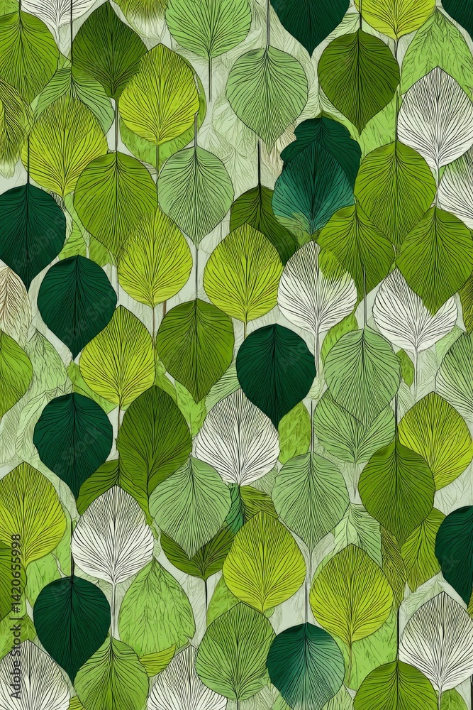Intricate Green Leaf Pattern: A Botanical Art Print #1420655998