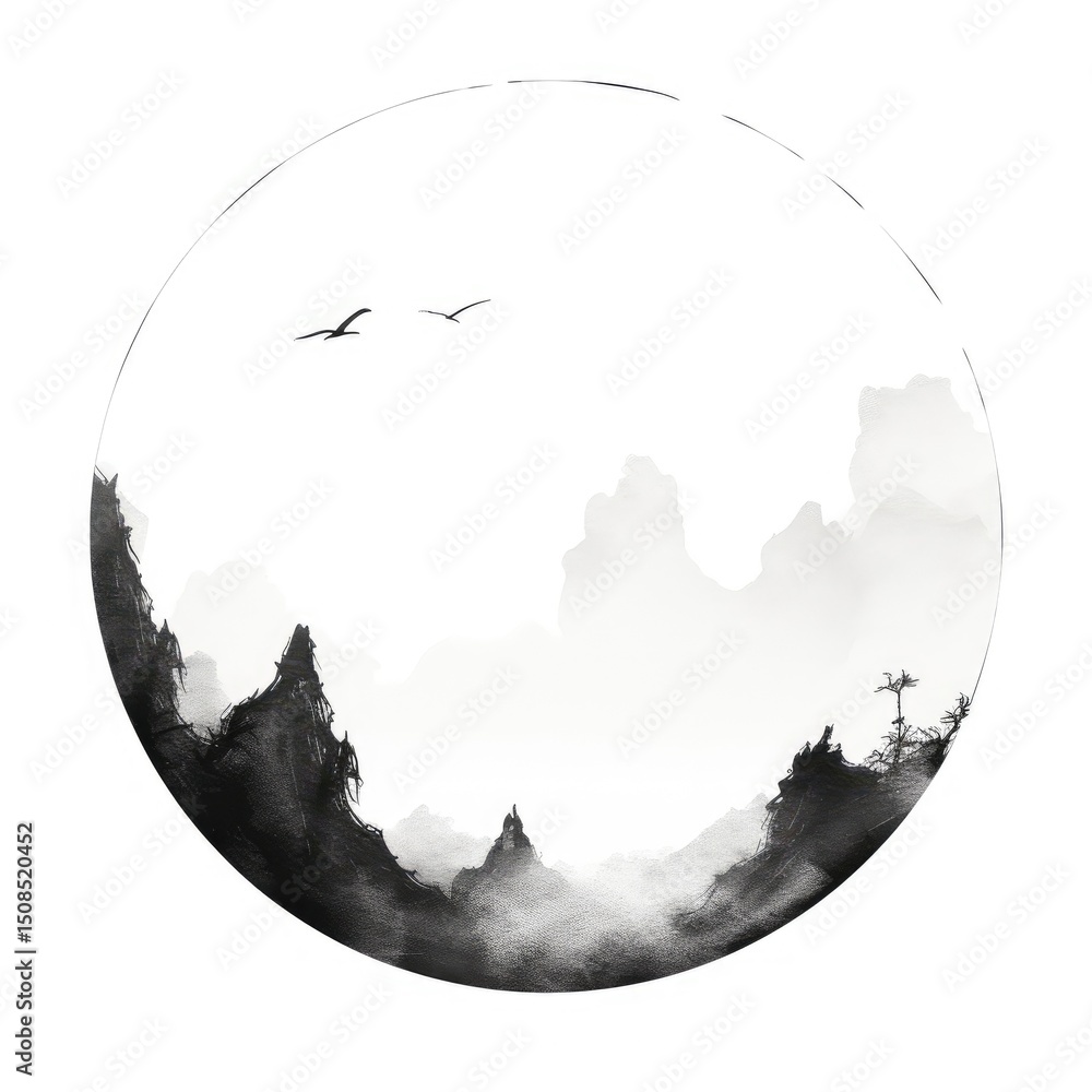 Stroke outline moutain and sun frame silhouette circle nature. #1508520452