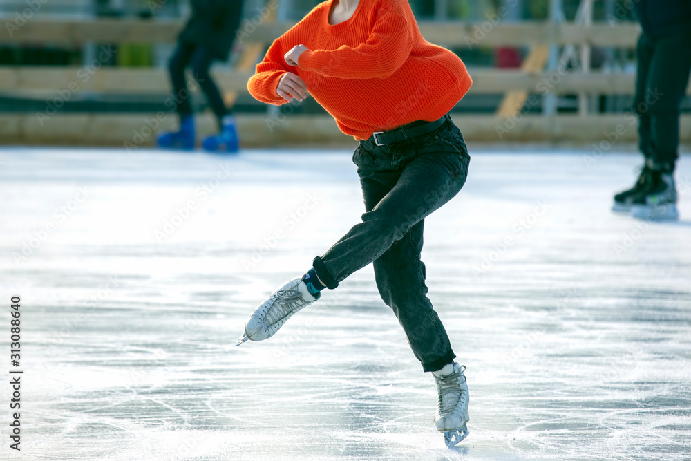 legs of a girl ice skating on an ice rink #313088640