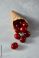 Summer fruits ripe red cherries in a wafer cones on a gray stone table. Vegetarian raw detox food. #221069031