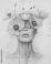 Na pierwszym planie znajduje się odważny, pomarańczowy słońce, którego intensywna barwa wprowadza energię i dynamikę do obrazu, kontrastując z delikatnymi, finezyjnymi kreskami trawy, które splatają się z postacią, tworząc harmonijny dialog między człowiekiem a naturą. Te drobne, zwiewne pociągnięcia przypominają japońską kaligrafię, nadając kompozycji spokój i subtelność.