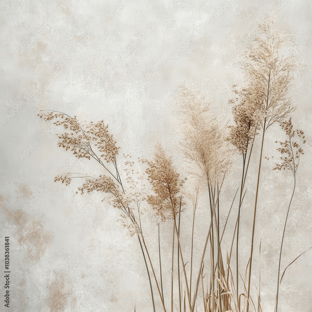 • Dried Pampas Grass on a Rustic Beige Background. id: 954876606