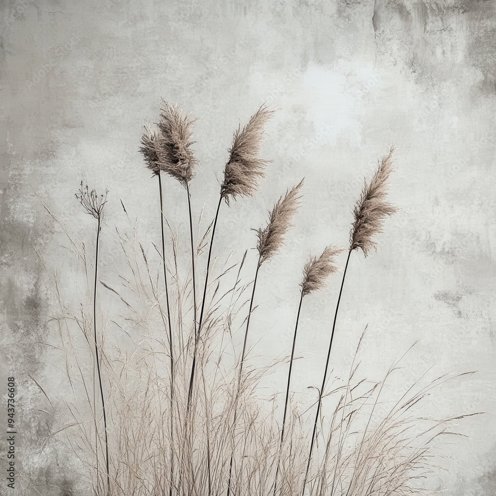 • Dried Pampas Grass on a Rustic Beige Background. id: 954876606