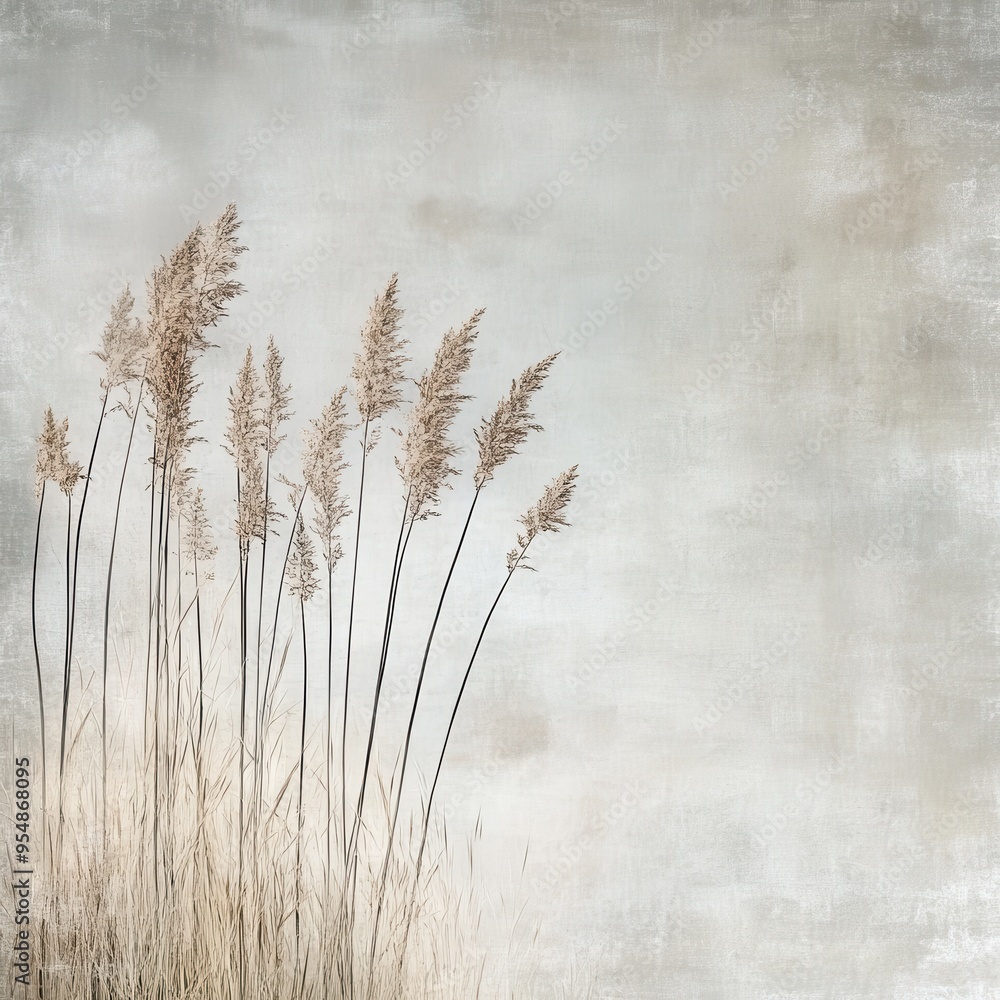 Abstract Watercolor Painting of Dried Grass on a Neutral Background. #954868095