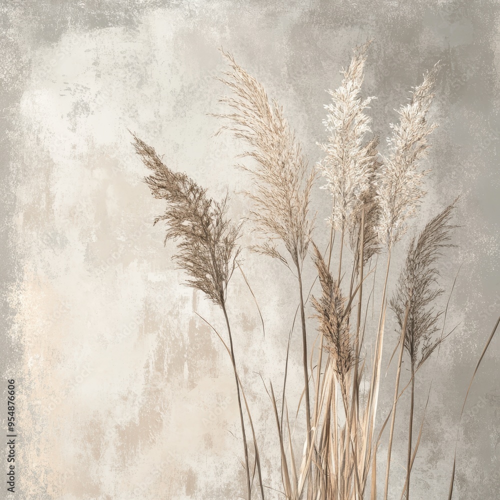 • Dried Pampas Grass on a Rustic Beige Background. id: 954876606