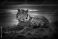 Tiger laying down resting and staring looking straight ahead monochrome black and white image #231171909
