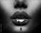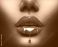 Red Paint dripping, lipgloss drops on sexy lips, bright liquid paint on beautiful model girl's... #381216903