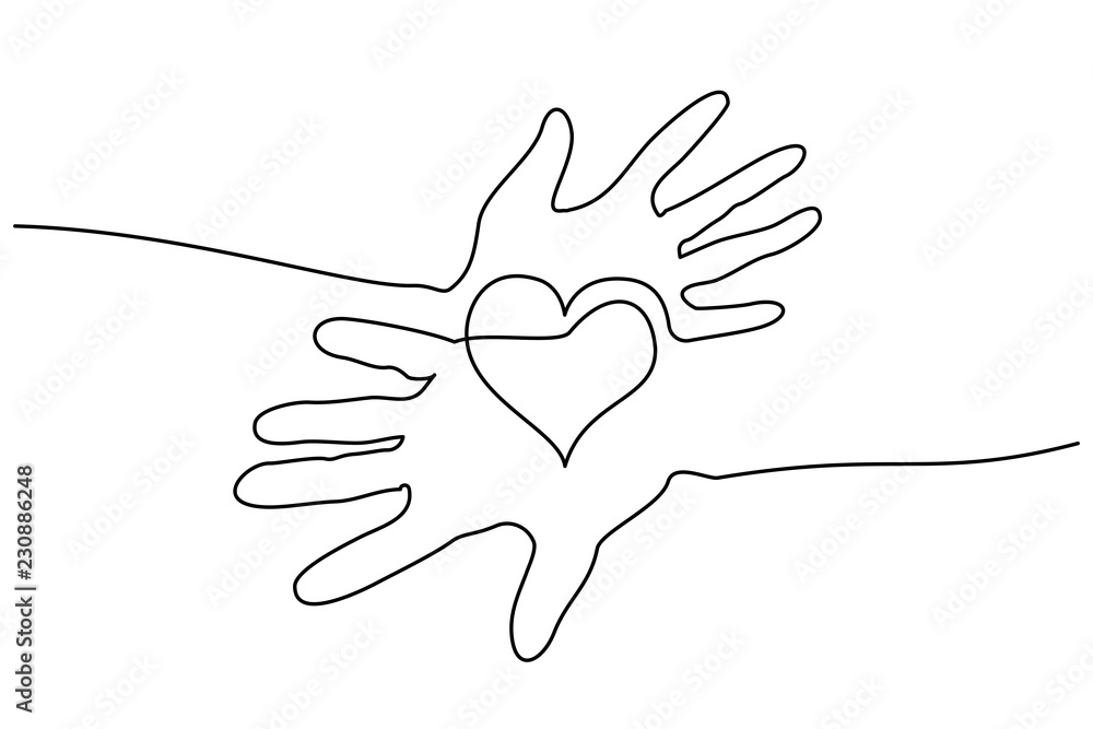 Continuous one line drawing. Abstract hands woman and man holding heart. Vector illustration #230886248