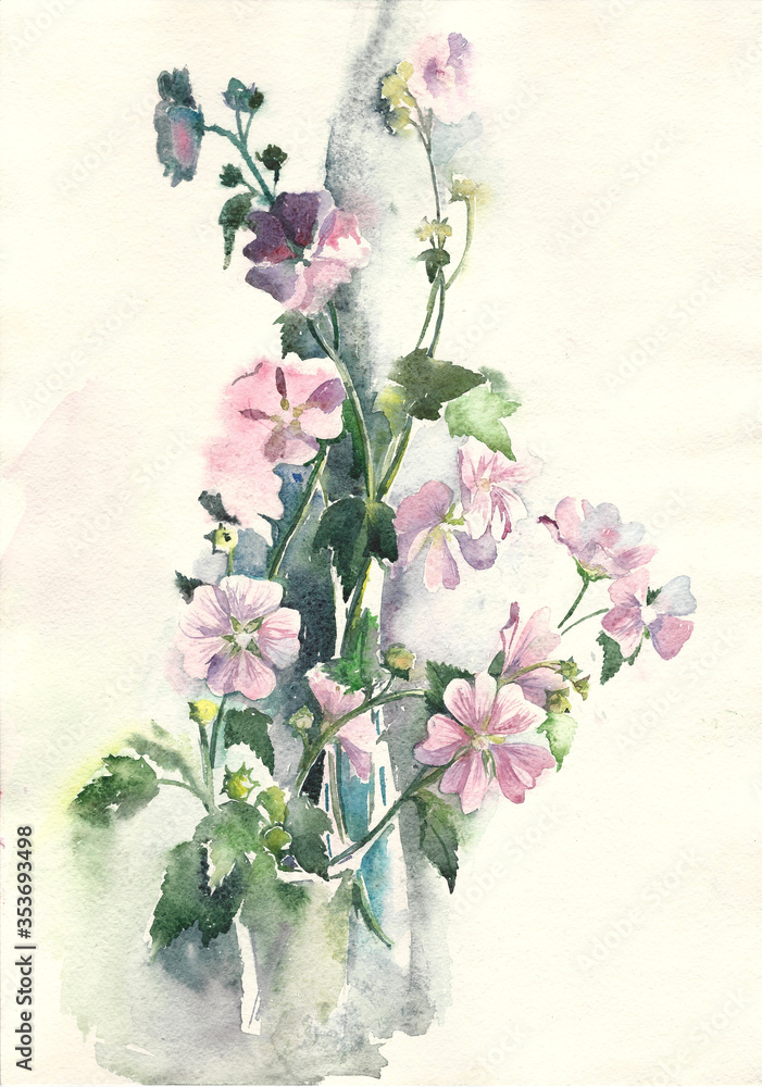 Plakaty i Obrazy Canvas z motywem kwiatowym - różowe kwiaty malwy, ilustracja botaniczna malowana akwarelą. Wiosenne kwiaty wielobarwne - są świetną dekoracją pasującą w każdym wnętrzu. Kwiaty kochamy wszyscy, więc nie ulega wątpliwości, że takie dekoracje na ścianę będą wspaniałym dopełnieniem aranżacji. Plakaty, Obrazy Canvas z motywem kwiatowym dodadzą nutkę artyzmu i świeżości. Nasza bogata kolekcja ilustracji, grafik, fotografii Fine Art. i szkiców daje ogromne możliwości stworzenia wspaniałej galerii na ścianę, która doda przytulności i rozświetli wnętrze. Wszystkie Plakaty i Obrazy Canvas drukujemy w pełnej palecie kolorystycznej w najpiękniejszej jakości ADOBE RGB.