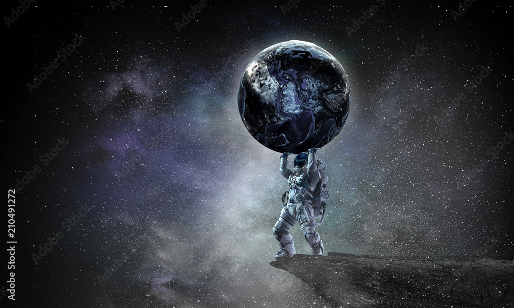 Spaceman carry big planet. Mixed media #210491272