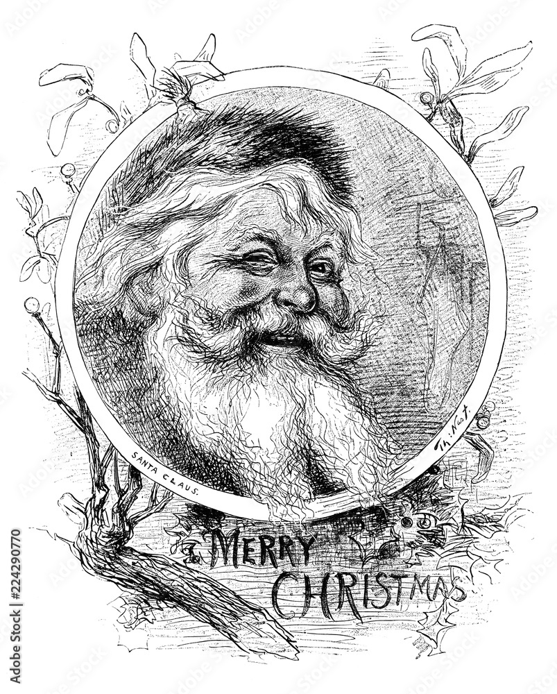 Plakat, Obraz świąteczna Ilustracja Retro - Święty Mikołaj. Wyjątkowe świąteczne plakaty, obrazy na płótnie, poddaj się gwiazdkowemu szaleństwu i stwórz własną świąteczną galerię na ścianę. Plakaty można również wyeksponować na półce czy komodzie, podkreślą całą świąteczną dekorację. Stwórz magiczną aurę świąt z e-obrazy.com