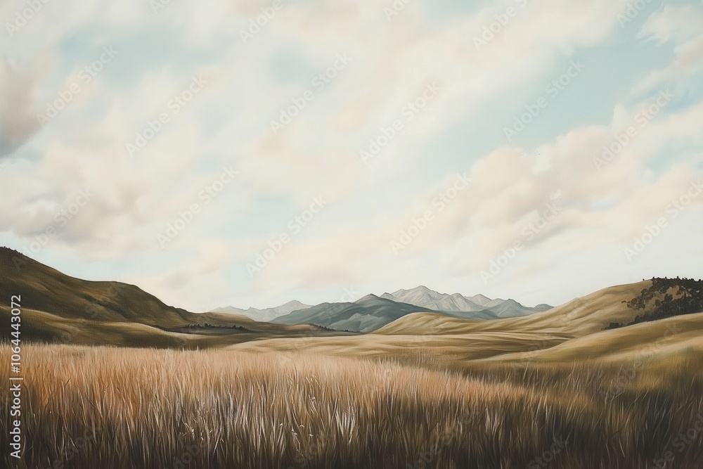 Vintage digital oil painting landscape for wall decor, art print, fine art, wallpaper, beautiful... #1064443072