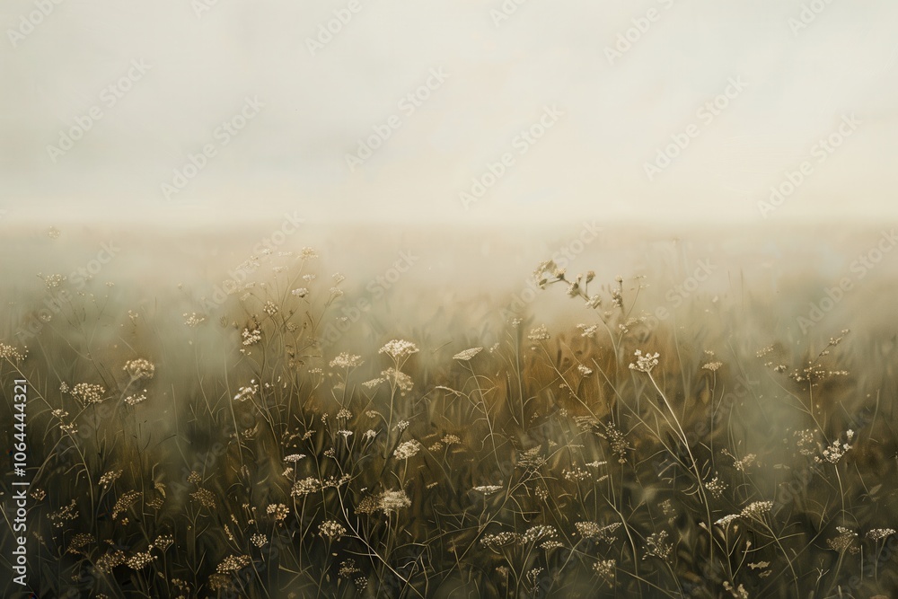 Vintage digital oil painting neutral landscape flowers for wall decor, art print, fine art,... #1064444321