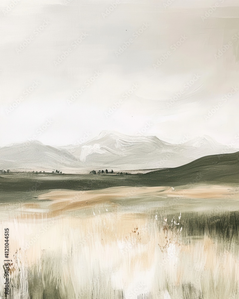 Vintage landscape art painting, wall art, design, realistic, textured painting #1121044515