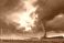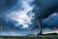 Tornado or twister storm clouds going over landscape and a ranch farm house destroying everything... #261868382